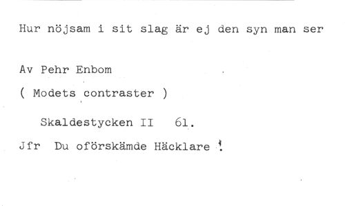 Hur nöjsam i sit slag är ej den syn man ser //// Av Pehr Enbom //// ( Modets contraster //// Skaldestycken II 61. //// Jfr Du oförskämde Häcklare