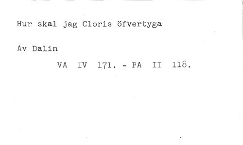 Hur skal jag Cloris öfvertyga //// Av Dalin //// VA IV 171. - PA II 118.