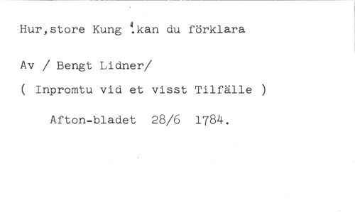 Hur,store Kung tkan du förklara //// Av / Bengt Lidner //// /( Inpromtu vid et visst Tilfälle ) //// Afton-bladet 28/6 1784.