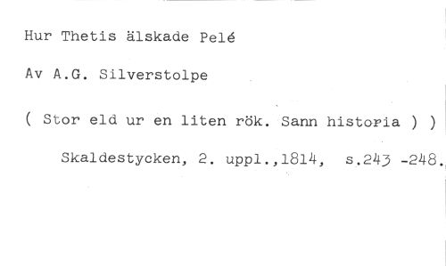Hur Thetis älskade PeiA Av A.G. Silverstolpe //// ( Stor eld ur en liten rök. Sann historia ) ) Skaldestycken, 2. uppl.,1814, s.243 -248.