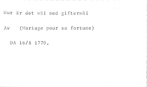 Hur är det weil med giftermål //// Av (Mariage pour sa fortune) //// DA 16/8 1770.