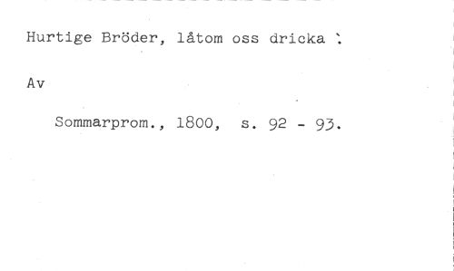 Hurtige Bröder, låtom oss dricka Av //// Sommarprom., 1800, s. 92 - 93.