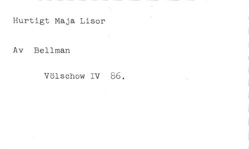 Hurtigt Maja Lisor //// Av Bellman //// Völschow IV 86.