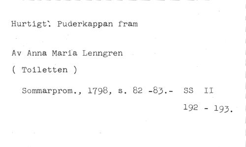 Hurtigt: Puderkappan fram //// Av Anna Maria Lenngren ( Toiletten ) //// Sommarprom., 1798, s. 82 -83.- SS II //// 192 - 193.