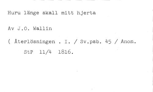 Huru länge skall mitt hjerta Av J.O. Wallin //// ( Återlösningen . 1. / Sv.psb. 45 / Anon. StP 11/4 1816.