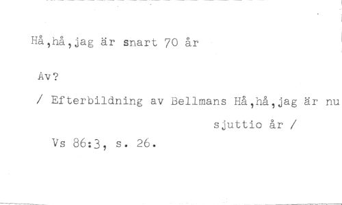 Hå,hå,jag är snart 70 år //// Av? //// / Efterbildning av Bellmans Hå,hå,jag är nu //// sjuttio år //// /Vs 86:3, s. 26.