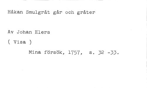 Håkan Smulgråt går och gråter //// Av Johan Elers ( Visa ) //// Mina försök, 1757, s. 32 -33.