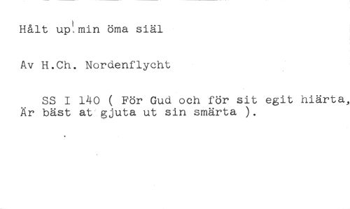 Hålt upmin öma siäl Av H.Ch. Nordenflycht //// SS I 140 ( För Gud och för sit egit hiärta, Är bäst at' gjuta ut sin smärta ).