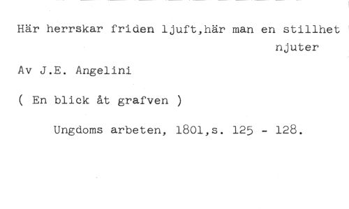 Här herrskar friden ljuft,här man en stillhet //// njuter //// Av J.E. Angelini //// ( En blick åt grafven ) //// Ungdoms arbeten, 1801,s. 125 - 128.