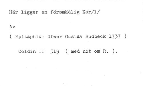 Här ligger en försmädlig Kar/l //// /Av //// ( Epitaphium öfwer Gustav Rudbeck 1737 ) //// Coldin II )19 ( med not om R. ).
