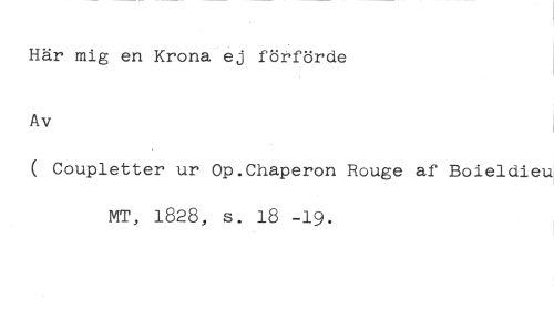 Här mig en Krona ej förförde //// Av //// ( Coupletter ur Op.Chaperon Rouge af Boieldieu MT, 1828, s. 18 -19.