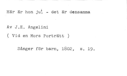 Här är hon jul - det är densamma //// Av J.E. Angelini //// ( Vid en Mors Porträtt ) //// Sånger för barn, 1802, s. 19.