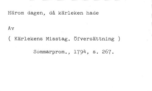 Härom dagen, då kärleken hade //// Av //// ( Kärlekens Misstag. öfversättning ) //// Sommarprom., 1794, s. 267.