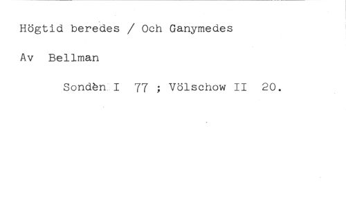 Högtid beredes / Och Ganymedes Av Bellman //// Sondhn I 77 ; Völschow II 20.