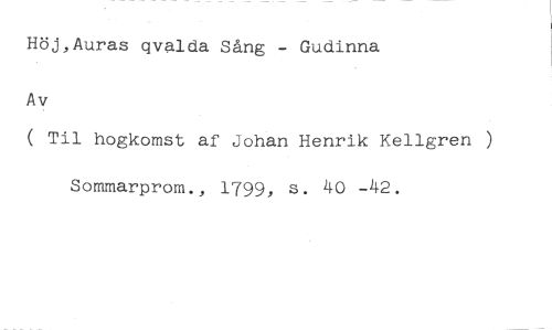 Höj,Auras qvalda Sång - Gudinna //// A //// ( Til hogkomst af Johan Henrik Kellgren ) //// Sommarprom., 1799, s. 40 -42.