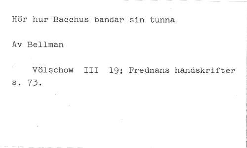 Hör hur Bacchus bandar sin tunna Av Bellman //// Völschow III 19; Fredmans handskrifter s. 73-