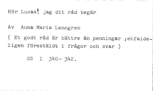 Hör Lucas! jag dit råd begär Av Anna Maria Lenngren //// ( Et godt råd är bättre än penningar ;enfaldeligen förestäldt i frågor och svar ) //// SS 1 340— 342.