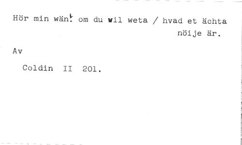 Hör min wänt: om du wil weta / hvad et ächta //// nöije är. //// Av //// Coldin II 201.
