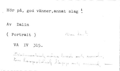 Hör på, god vänner,annat slag //// Av Dalin //// ( Portrait ) //// VA IV 315.