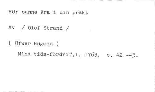 Hör sanna Ära i din prakt Av / Olof Strand //// /( öfwer Högmod ) //// Mina tids-fördrif,l, 1763, s. 42 -43.