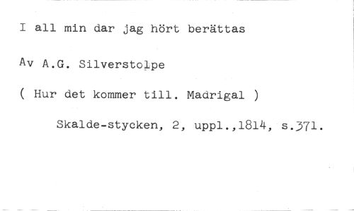 I all min dar jag hört berättas //// Av A.G. Silverstolpe //// ( Hur det kommer till. Madrigal ) Skalde-stycken, 2, upp1.,1814, s.371.