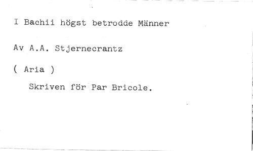 I Bachii högst betrodde Männer Av A.A. Stjernecrantz //// ( Aria ) //// Skriven för Par Bricole.