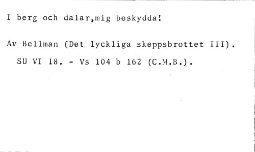 I berg och dalar,mig beskydda! //// Av Bellman (Det lyckliga skeppsbrottet III). SU VI 18. - Vs 104 b 162 (C.M.B.).