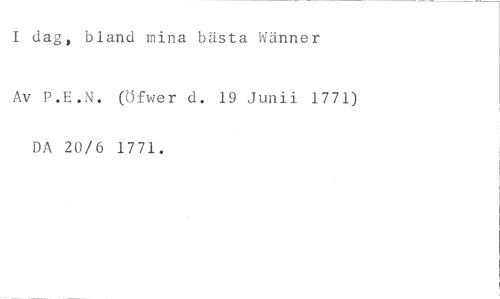 I dag, bland mina bästa Wänner //// Av P.E.N. (Öfwer d. 19 Junii 1771) //// DA 20/6 1771.