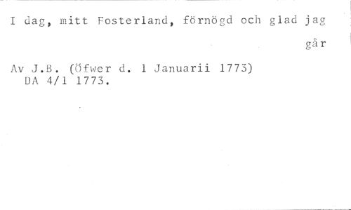 I dag, mitt Fosterland, förnögd och glad jag //// går //// Av J.B. (Öfwer d. 1 Januarii 1773) DA 4/1 1773.