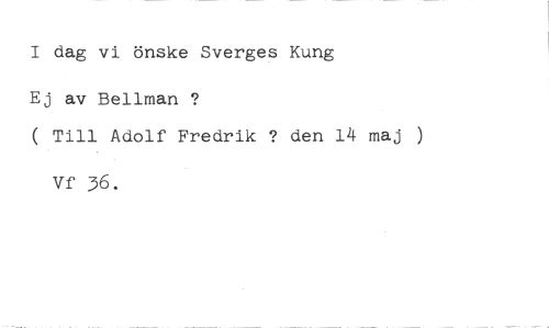 I dag vi önske Sverges Kung //// Ej av Bellman ? //// ( Till Adolf Fredrik ? den 14 maj ) //// Vf 36.