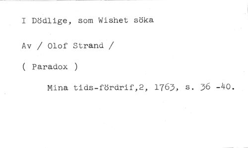 I Dödlige, som Wishet söka //// Av / Olof Strand / ( Paradox ) //// Mina tids-fördrif,2, 1 763, s. 36 -4o.