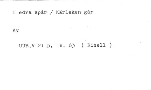 I edra spår / Kärleken går Av //// UUB,V 21 p, s. 63 ( Risell )