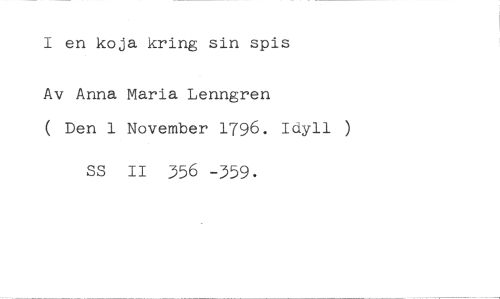 I en koja kring sin spis //// Av Anna Maria Lenngren //// ( Den 1 November 1796. Idyll ) //// SS II 556 -359.