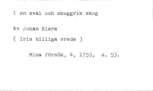 1 en sval och skuggrik skog //// Av Johan Elers //// ( Iris billiga vrede ) //// Mina försök, 4, 1759, s. 53.