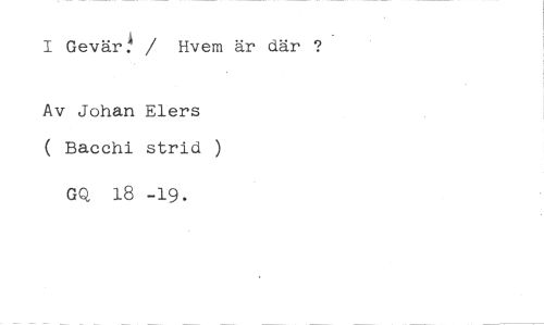 I Gevär! / Hvem är där ? //// Av Johan Elers //// ( Bacchi strid ) //// GQ 18 -19.