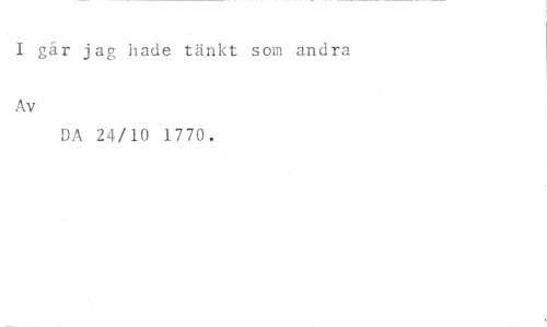 I går jag hade tänkt som andra //// Av //// DA 24/10 1770.