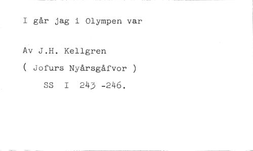 går jag i Olympen var //// Av J.H. Kellgren //// ( Jofurs Nyårsgåfvor SS I 243 -246.