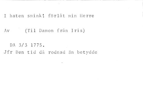 I haten smink! förlåt min Herre //// Av (Til Damon från Iris) //// DA 3/3 1775. //// Jfr Den tid då rodnad än betydde