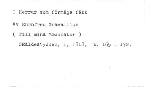 I Herrar som förmåga fått //// Av Ehrnfred Gravallius ( Till mina Mecenater ) //// Skaldestycken, 1, 1818, s. 165 - 172.