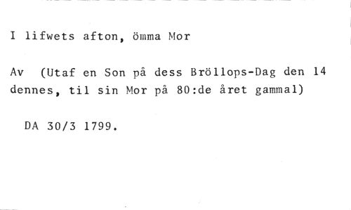 I lifwets afton, ömma Mor //// Av (Utaf en Son på dess Bröllops-Dag den 14 dennes, til sin Mor på 80:de året gammal) //// DA 30/3 1799.