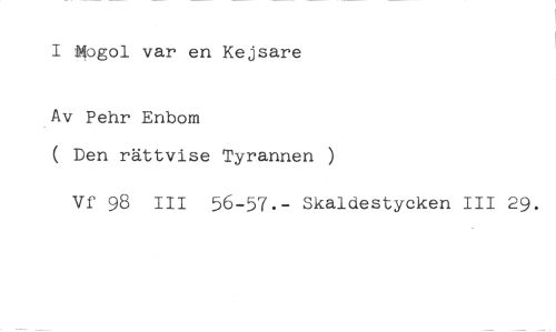 I Mogol var en Kejsare //// Av Pehr Enbom //// ( Den rättvise Tyrannen //// Vf 98 III 56-57.- Skaldestycken III 29.