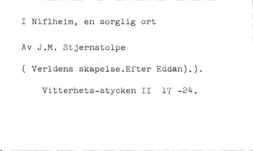 I Niflheim, en sorglig ort //// Av J.M. Stjernstolpe //// ( Verldens skapelse.Efter Eddan).). Vitterhets-stycken II 17 -24.