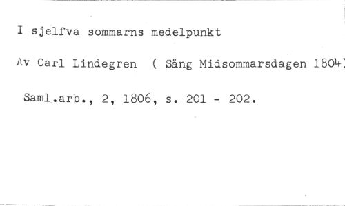 I sjelfva sommarns medelpunkt //// Av Carl Lindegren ( Sång Midsommarsdagen 1804: //// Saml.arb., 2, 1806, s. 201 - 202.