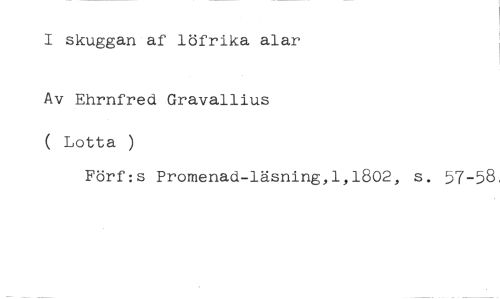 1 skuggan af löfrika alar Av Ehrnfred Gravallius //// ( Lotta ) //// Förf:s Promenad-läsning,1,1802, s. 57-58,