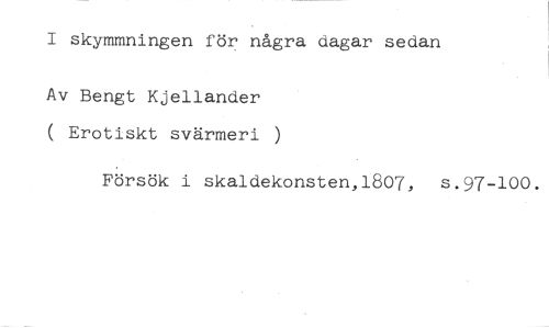 skymmningen för några dagar sedan //// Av Bengt Kjellander //// ( Erotiskt svärmeri ) //// Försök i skaldekonsten,1807, s.97-100.
