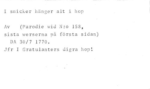 I smicker hänger alt i hop //// Av (Parodie wid N:o 158, //// sista verserna på första sidan) DA 30/7 1770. //// Jfr I Gratulanters digra hop!