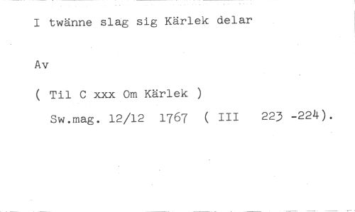 I twänne slag sig Kärlek delar Av //// ( Til C xxx Om Kärlek ) //// Sw.mag. 12/12 1767 ( III 223 -224).
