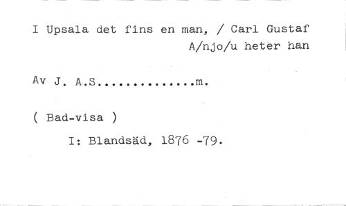 I Upsala det fins en man, / Carl Gustaf //// A/njo/u heter han //// Av J. A.S //// ( Bad-visa ) //// I: Blandsäd, 1876 -79.