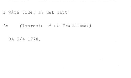 I wåra tider är det lätt //// Av (Impromtu af et Fruntimmer) //// DA 3/4 1778.