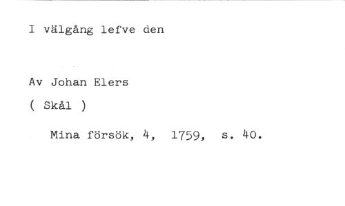 I välgång lefve den //// Av Johan Elers ( Skål ) //// Mina försök, 4, 1759, s. 40.